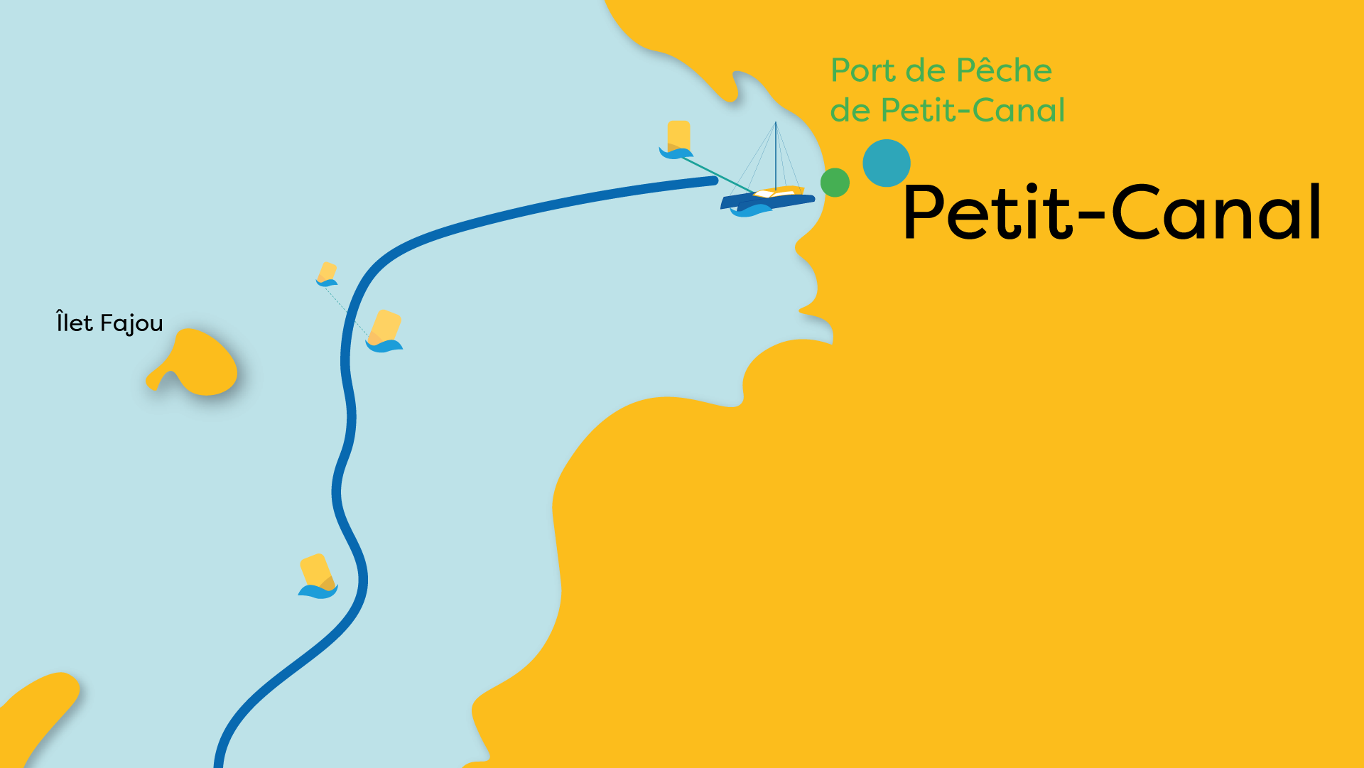 Le départ se fera au niveau du port de pêche de Petit-Canal à 8H00 pour une traversée du grand cul de sac marin. 2H de navigation avec 11 milles nautiques à pour arriver dans le port de plaisance de Baie-Mahault.